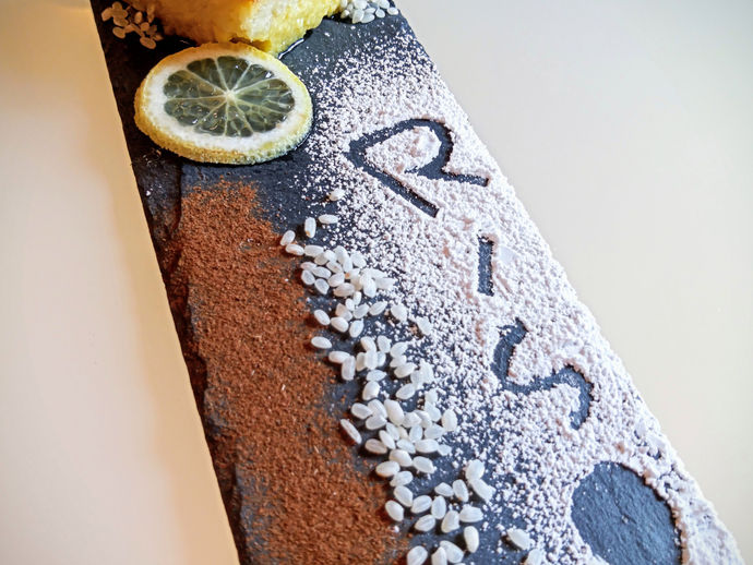Torta di riso, agrumi, cannella, Sassolino e Pampero